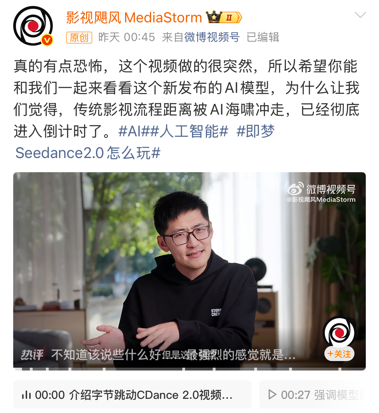 对于此款Seedance 2.0模型,游戏科学创始人、CEO、《黑神话:悟空》制作人冯骥甚至在发文谈及Seedance 2.0时直言:“AIGC的童年时代结束了。”