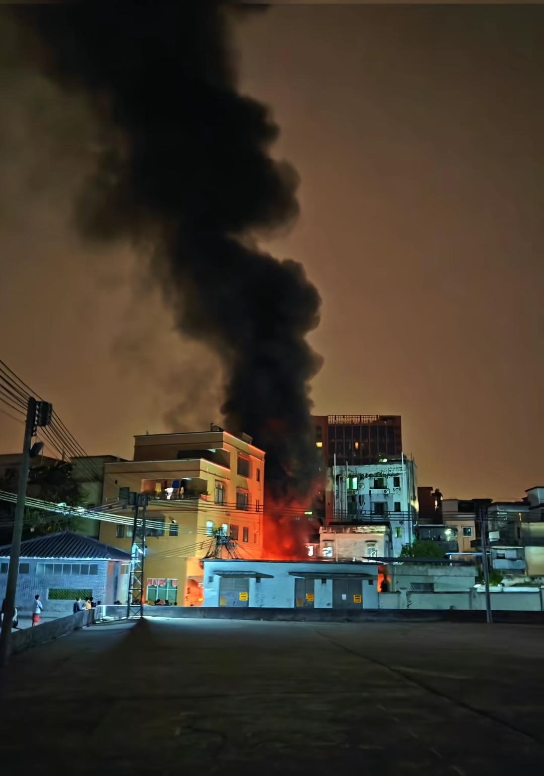 火灾现场火光冲天,浓烟滚滚。